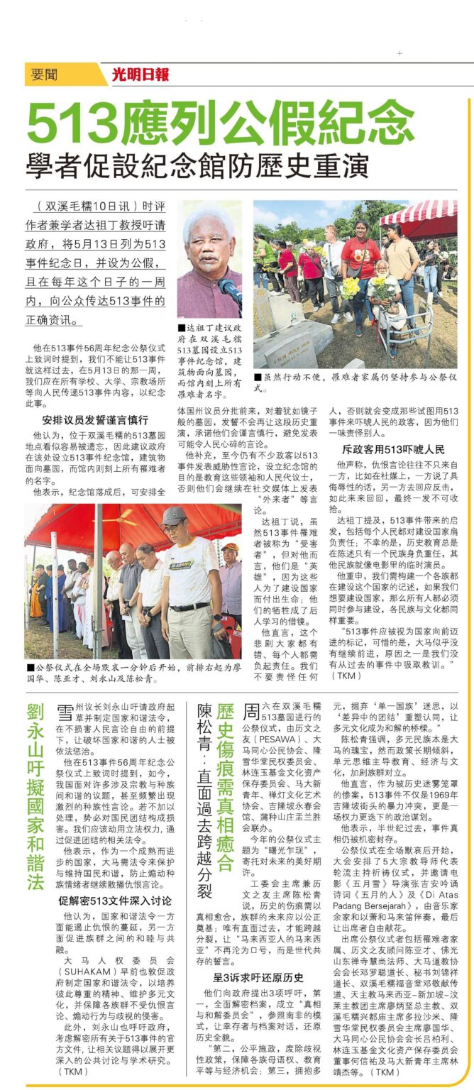 - 马大新青年参与513公祭 吁雪州政府列513墓园为州文化遗产 —— 东方日报