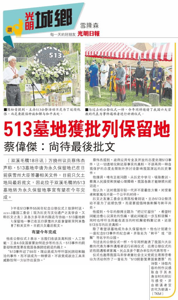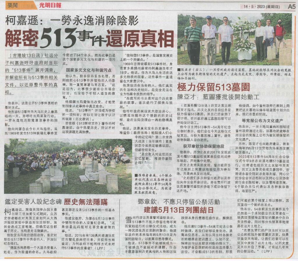 - 513事件56周年公祭〡透过《五月雪》发现 兄妹终寻获父墓地 —— 光明日报